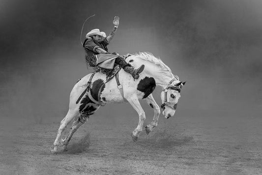 The Brave Little Cowboy Is Smile White Modern Wood Framed Art Print with Double Matting by Liang, Ken