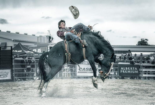 Cowboy In Action White Modern Wood Framed Art Print with Double Matting by Deng, Larry