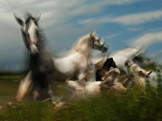 Horses White Modern Wood Framed Art Print with Double Matting by Mete, Gilcan