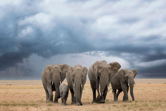 Elephant Walk White Modern Wood Framed Art Print with Double Matting by Doyle, Renee