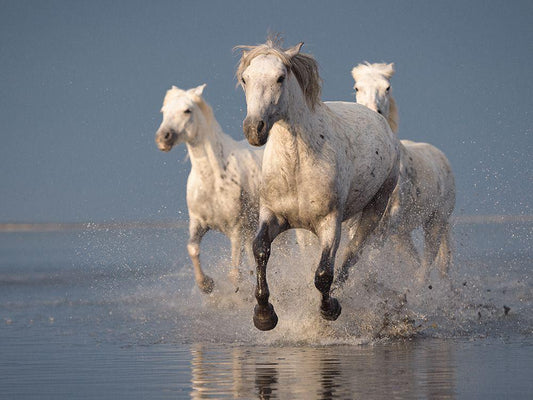Water Horses White Modern Wood Framed Art Print with Double Matting by Tekdogan, Barkan