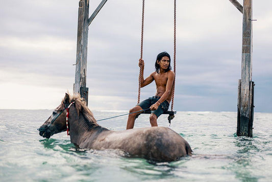 Sea Horses White Modern Wood Framed Art Print with Double Matting by Ashley, Ben