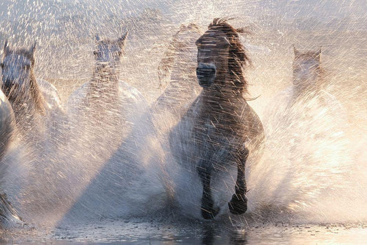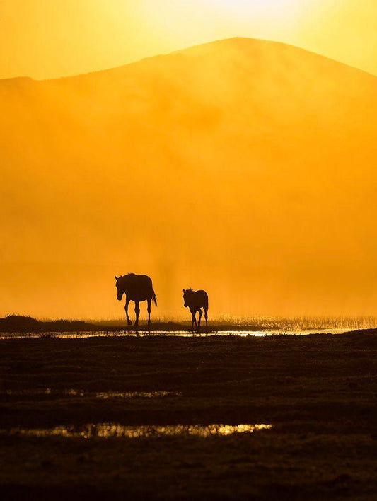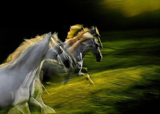 Horses 2 White Modern Wood Framed Art Print with Double Matting by Nisan Kandilcioglu, Ummu