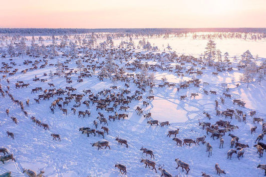 North Of Russia - Wilde Reindeers White Modern Wood Framed Art Print with Double Matting by Minar, Patrik