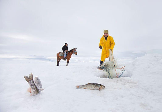 Fisherman White Modern Wood Framed Art Print with Double Matting by Ari, Nese