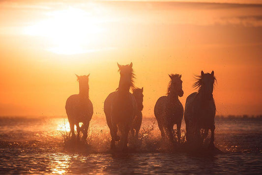 Camargue Horses White Modern Wood Framed Art Print with Double Matting by Anton, Rostovskiy