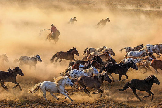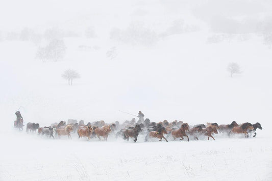 Horse Run White Modern Wood Framed Art Print with Double Matting by Wong, Adam