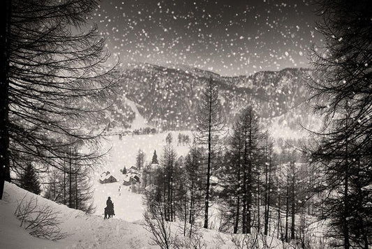 Winter Pastures White Modern Wood Framed Art Print with Double Matting by Xu, Tony