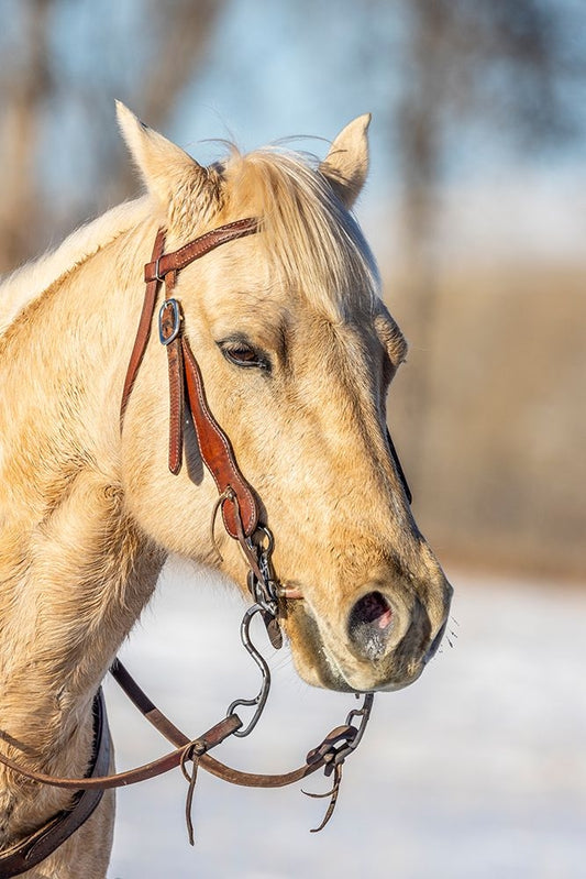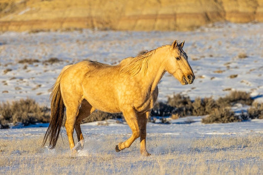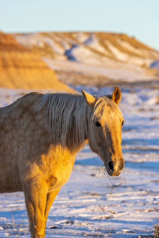 USA- Wyoming. Hideout Horse Ranch- horse in snow. White Modern Wood Framed Art Print with Double Matting by Looney, Hollice