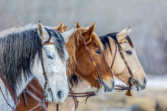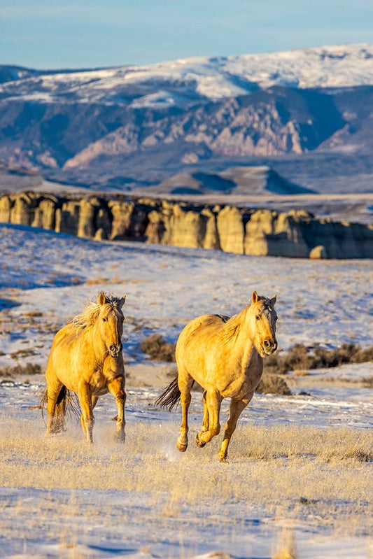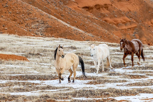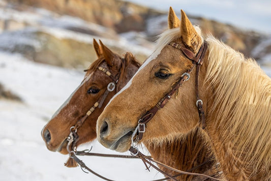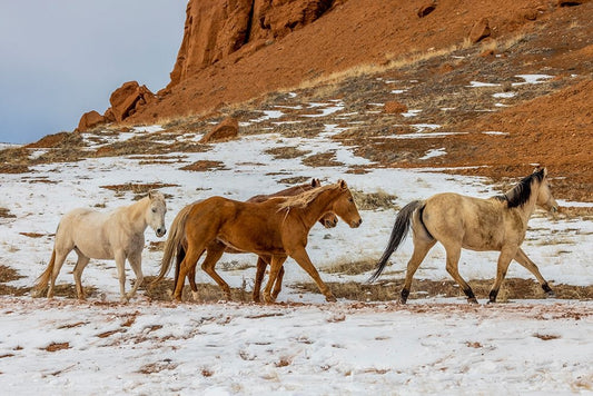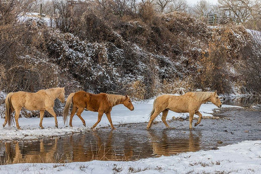 USA- Wyoming. Hideout Horse Ranch- horses in snow. White Modern Wood Framed Art Print with Double Matting by Looney, Hollice