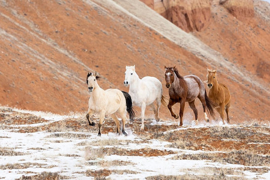 USA- Wyoming. Hideout Horse Ranch- horse in snow. White Modern Wood Framed Art Print with Double Matting by Looney, Hollice