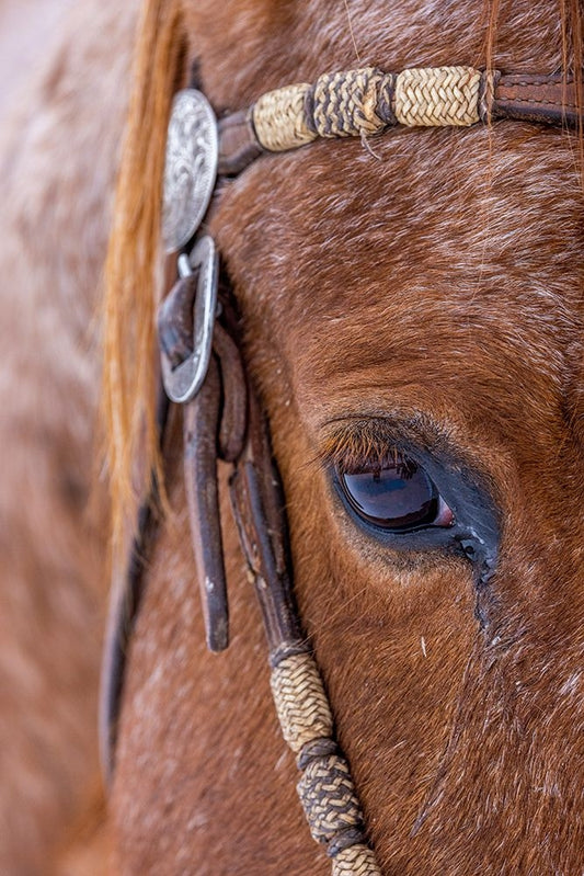 USA- Shell- Wyoming. Hideout Ranch close-up of horses eye. White Modern Wood Framed Art Print with Double Matting by Gulin, Darrell