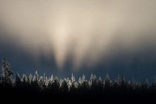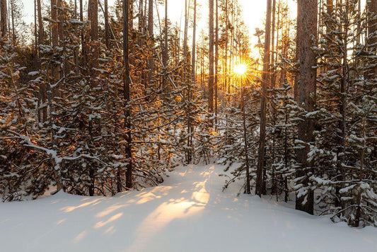 Sunrise through the lodgepole pine, Yellowstone National Park White Modern Wood Framed Art Print with Double Matting by The Yellowstone Collection