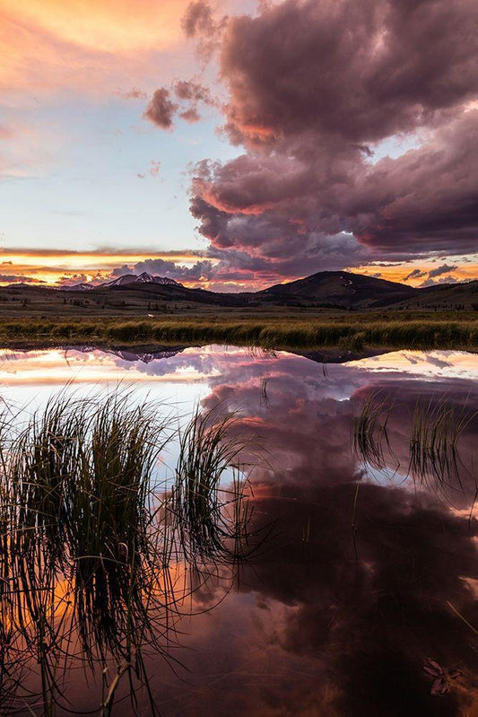 Sunset storm over the Washburn Range, Yellowstone National Park White Modern Wood Framed Art Print with Double Matting by The Yellowstone Collection
