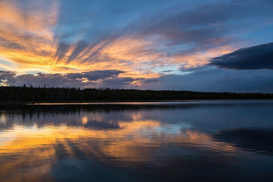 Sunset, Flat Mountain Arm, Yellowstone National Park White Modern Wood Framed Art Print with Double Matting by The Yellowstone Collection