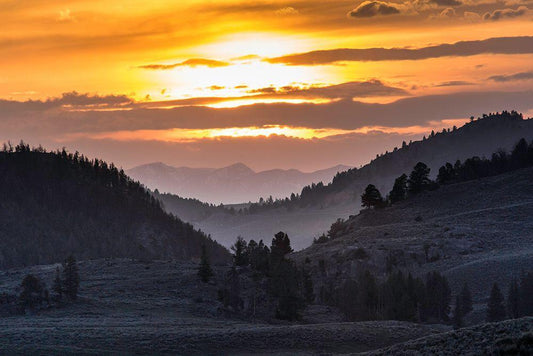 Sunset, Lamar Valley, Yellowstone National Park White Modern Wood Framed Art Print with Double Matting by The Yellowstone Collection