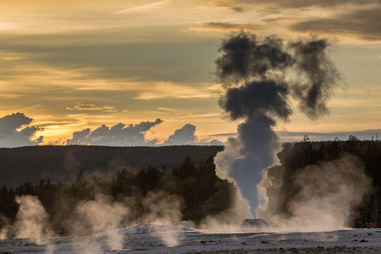 Sunset, Lion Geyser, Yellowstone National Park White Modern Wood Framed Art Print with Double Matting by The Yellowstone Collection