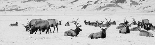 USA-Wyoming-Tetons National Park-National Elk Refuge Large elk herd in winter White Modern Wood Framed Art Print with Double Matting by Hopkins, Cindy Miller