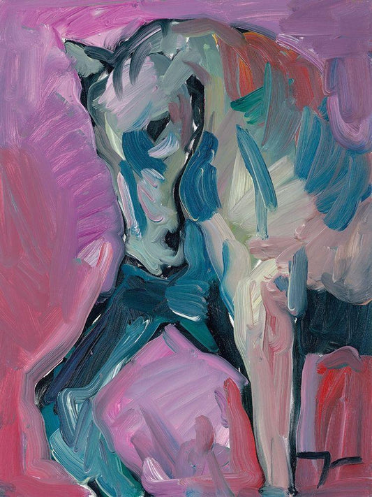Colored Steer Head III White Modern Wood Framed Art Print with Double Matting by Seven Trees Design