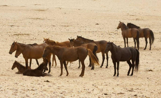 Namibia, Garub Herd of feral horses White Modern Wood Framed Art Print with Double Matting by Young, Bill
