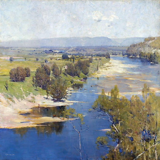 Arthur Streeton - Cremorne Pastoral White Modern Wood Framed Art Print with Double Matting by Stellar Design Studio