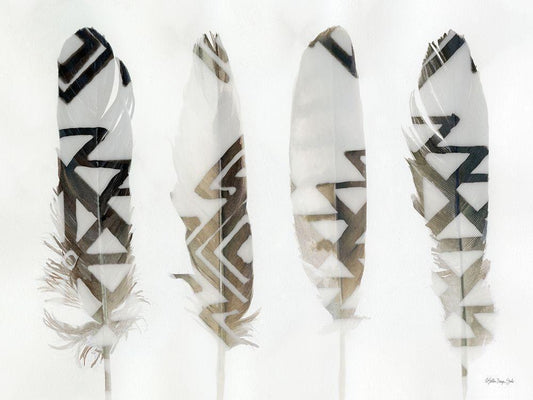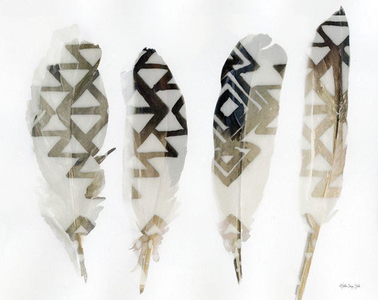 Four Feathers White Modern Wood Framed Art Print with Double Matting by Stellar Design Studio