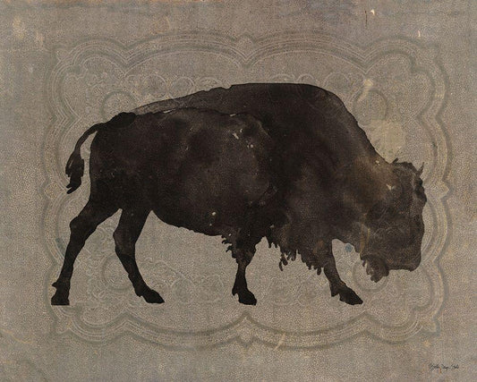Buffalo Impression 1 White Modern Wood Framed Art Print with Double Matting by Stellar Design Studio