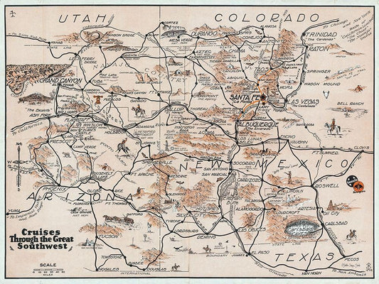 Southwest Travel Map White Modern Wood Framed Art Print with Double Matting by Stellar Design Studio