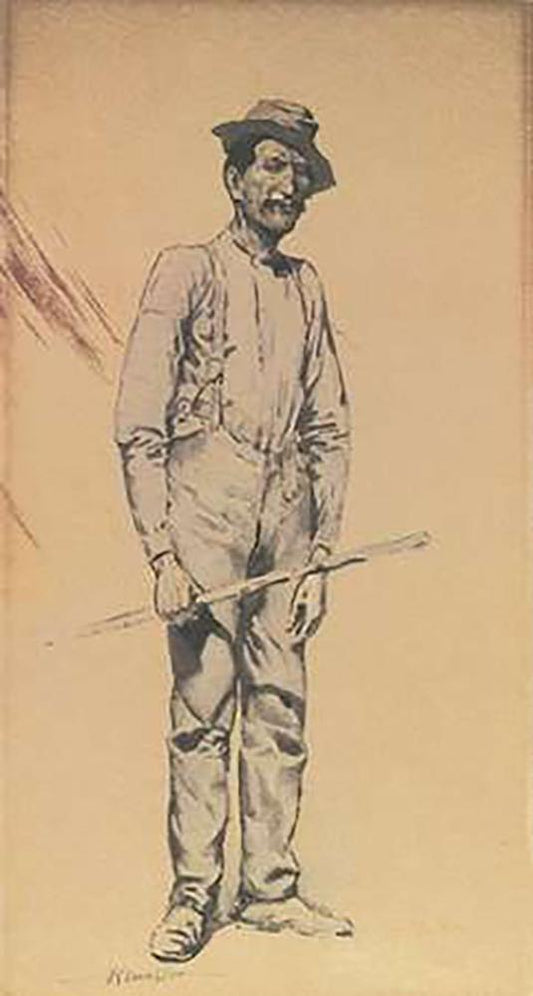 White Otter Is No Longer A Boy White Modern Wood Framed Art Print with Double Matting by Remington, Frederic
