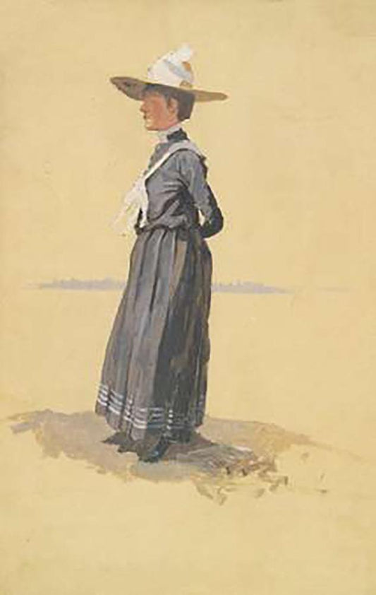 Eva White Modern Wood Framed Art Print with Double Matting by Remington, Frederic