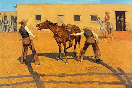 The Sundance White Modern Wood Framed Art Print with Double Matting by Remington, Frederic