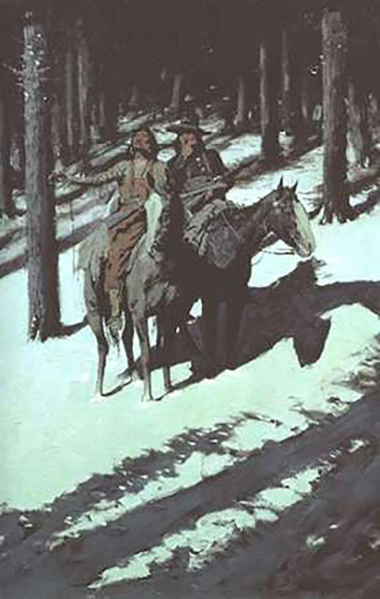 Detail The Snow Trail White Modern Wood Framed Art Print with Double Matting by Remington, Frederic