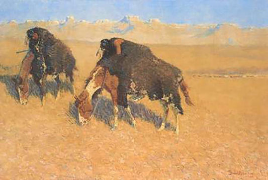 Indians Simulating Buffalo White Modern Wood Framed Art Print with Double Matting by Remington, Frederic