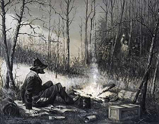 Prospectors Making Frying Pan Bread White Modern Wood Framed Art Print with Double Matting by Remington, Frederic