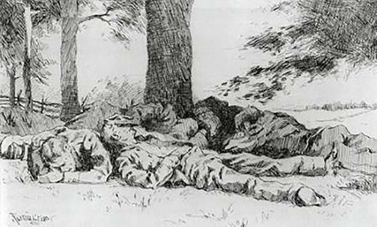 The Noonday Halt White Modern Wood Framed Art Print with Double Matting by Remington, Frederic