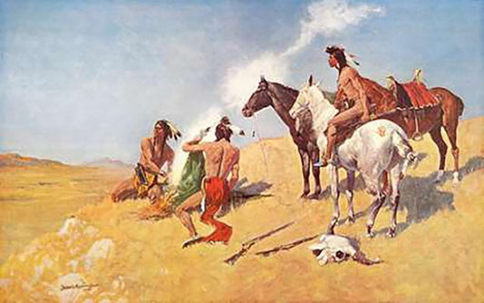The Smoke Signal White Modern Wood Framed Art Print with Double Matting by Remington, Frederic
