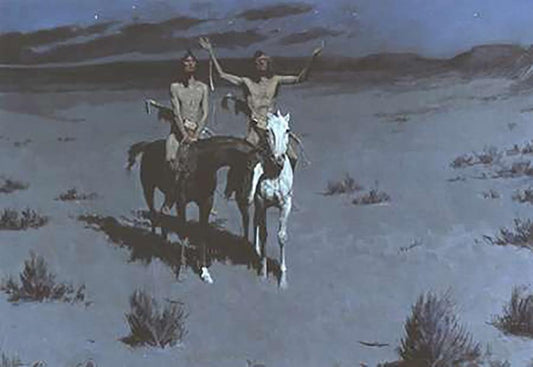 Indian In The Moonlight White Modern Wood Framed Art Print with Double Matting by Remington, Frederic