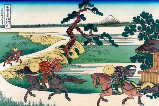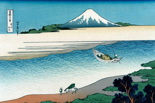 Tama River in Musashi Province, 1830 White Modern Wood Framed Art Print with Double Matting by Hokusai