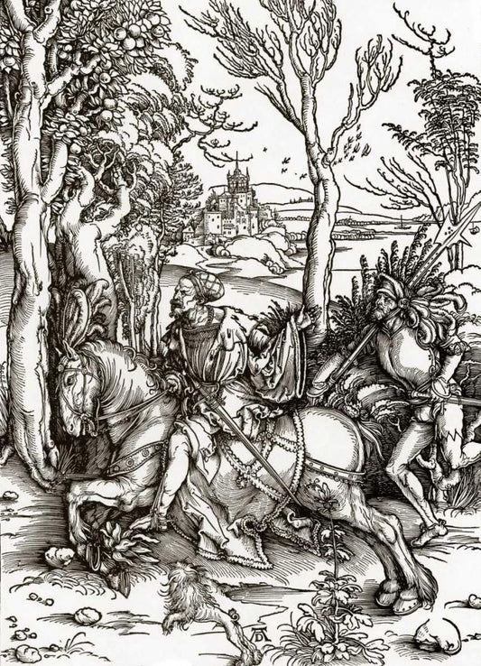 The Knight And The Landsknecht White Modern Wood Framed Art Print with Double Matting by Durer, Albrecht