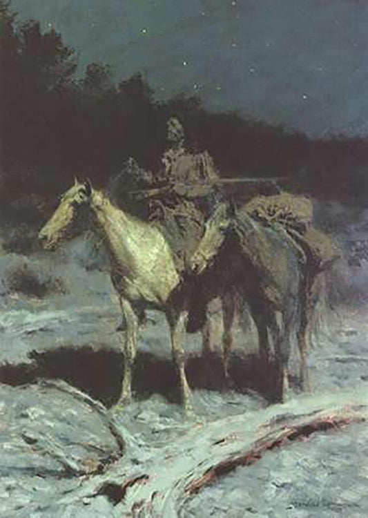 Cold Morning in the Range - duplicate of 268456 White Modern Wood Framed Art Print with Double Matting by Remington, Frederic