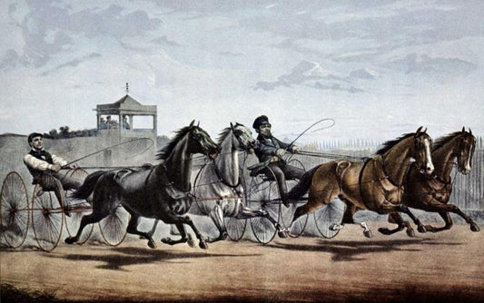 A Race For Blood White Modern Wood Framed Art Print with Double Matting by Currier and Ives