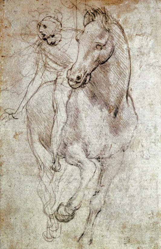 Horse and Rider White Modern Wood Framed Art Print with Double Matting by Da Vinci, Leonardo