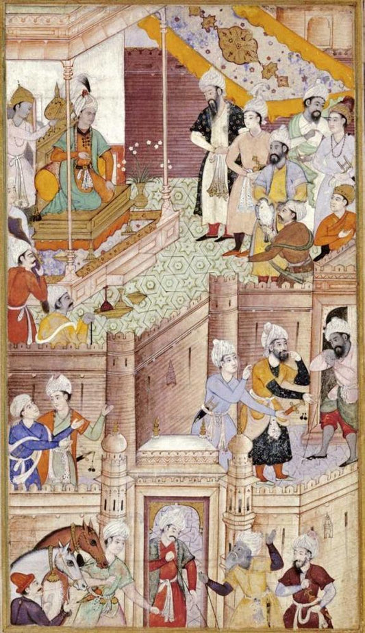 Illustration To The Baburnama White Modern Wood Framed Art Print with Double Matting by Karan, Khem