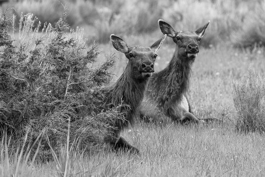 Elk, Sepulcher Mountain Trail, Yellowstone National Park White Modern Wood Framed Art Print with Double Matting by The Yellowstone Collection