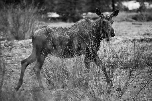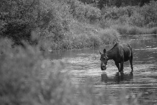 Female Moose, Gallatin River, Yellowstone National Park White Modern Wood Framed Art Print with Double Matting by The Yellowstone Collection
