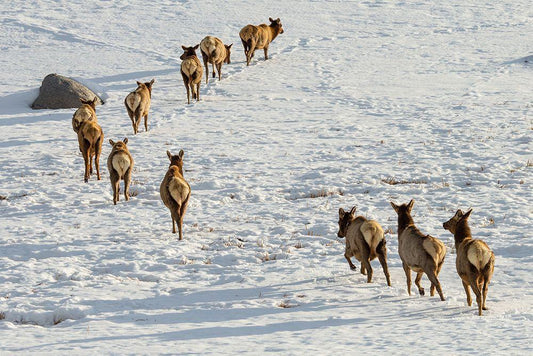 Elk on the Move, Lamar Valley, Yellowstone National Park White Modern Wood Framed Art Print with Double Matting by The Yellowstone Collection