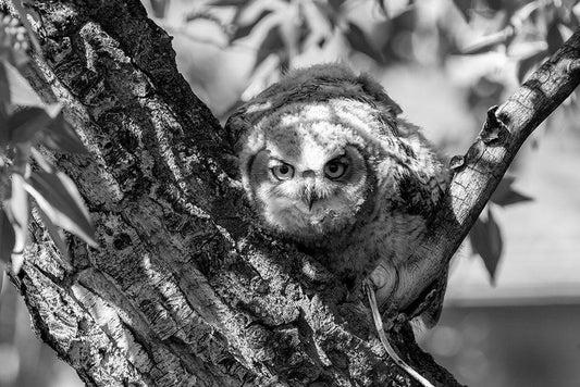 Fledged Great Horned Owl Chick, Yellowstone National Park White Modern Wood Framed Art Print with Double Matting by Frank, Jacob W.