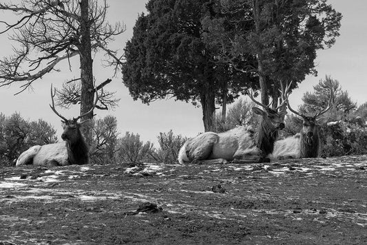 Bull Elk in Mammoth Hot Springs, Yellowstone National Park White Modern Wood Framed Art Print with Double Matting by The Yellowstone Collection