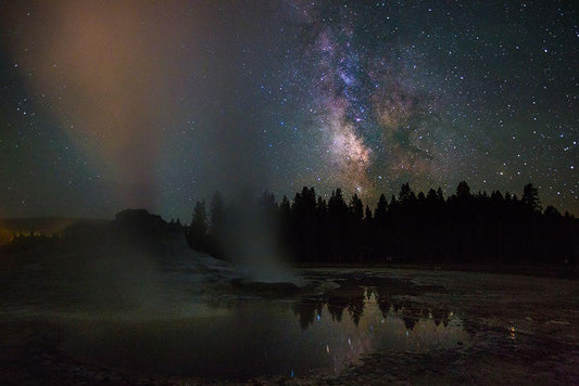 Castle Geyser and Milky Way, Yellowstone National Park White Modern Wood Framed Art Print with Double Matting by The Yellowstone Collection