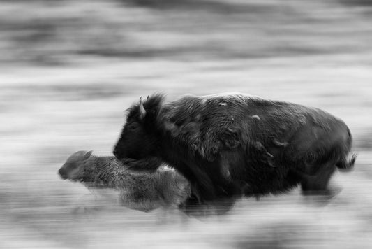 Bison Cow and Calf in Lamar Valley, Yellowstone National Park White Modern Wood Framed Art Print with Double Matting by The Yellowstone Collection